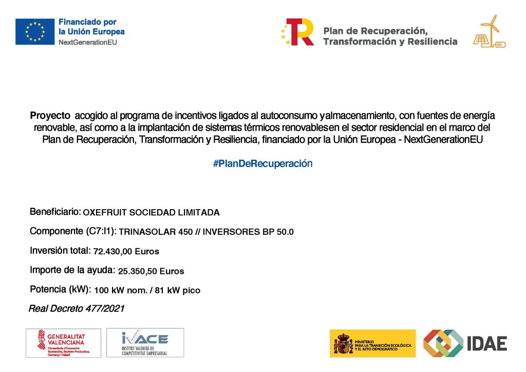 La empresa OXEFRUIT SOCIEDAD LIMITADA ha recibido en el ejercicio 20121 la siguiente ayuda de fomento a la contratación: ECOVUT- 2021.
