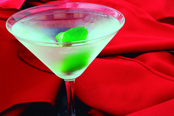 Verter todos los ingredientes en un vaso mezclador con cubitos de hielo. Revolver bien y colar en una copa de cóctel de martini fría. Exprimir el aceite de la cáscara de limón sobre la bebida y decorar con aceitunas verdes.