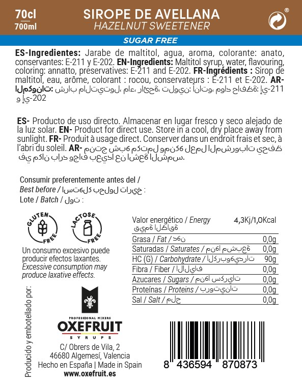 Syrop orzechowy bez cukru to idealna opcja, aby dodać pyszny i kremowy akcent do koktajli, deserów i wypieków, bez dodatku cukru. Jego delikatny i autentyczny smak orzecha laskowego czyni go wszechstronnym składnikiem do wszelkiego rodzaju słodkich i aromatycznych kreacji.