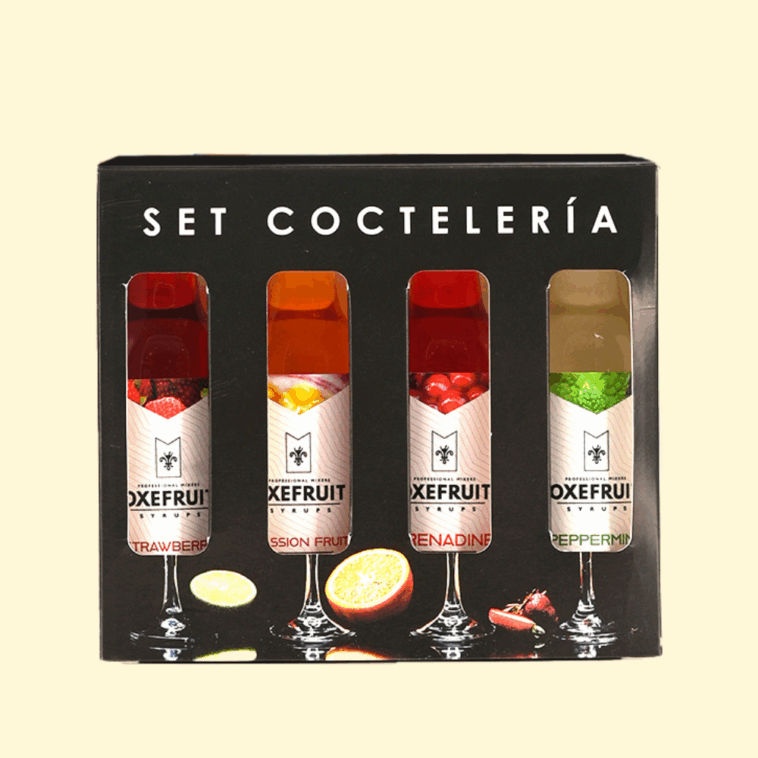 Conviértete en un auténtico bartender en casa con el Set Bartender de Oxefruit. Este pack reúne cuatro siropes irresistibles —fresa, maracuyá, granadina y hierbabuena— ideales para preparar cócteles refrescantes, creativos y llenos de color.